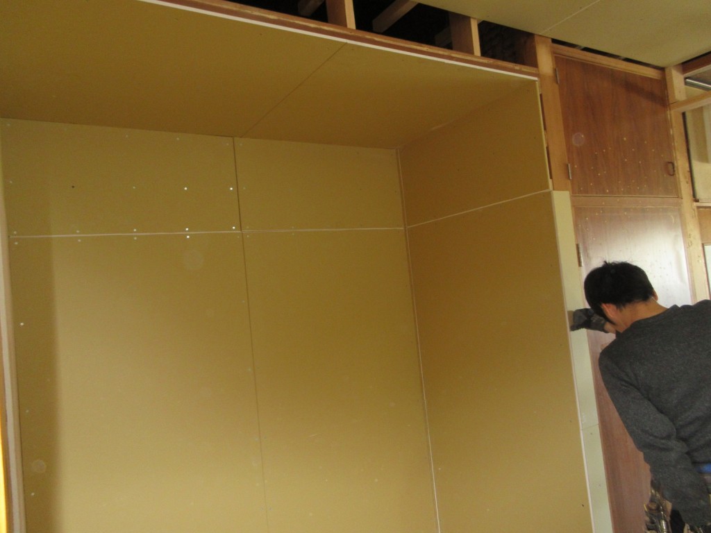 今回 施主様要望により既存タンス置き場を設けました。また、余ったスペースに収納棚を設けます。
