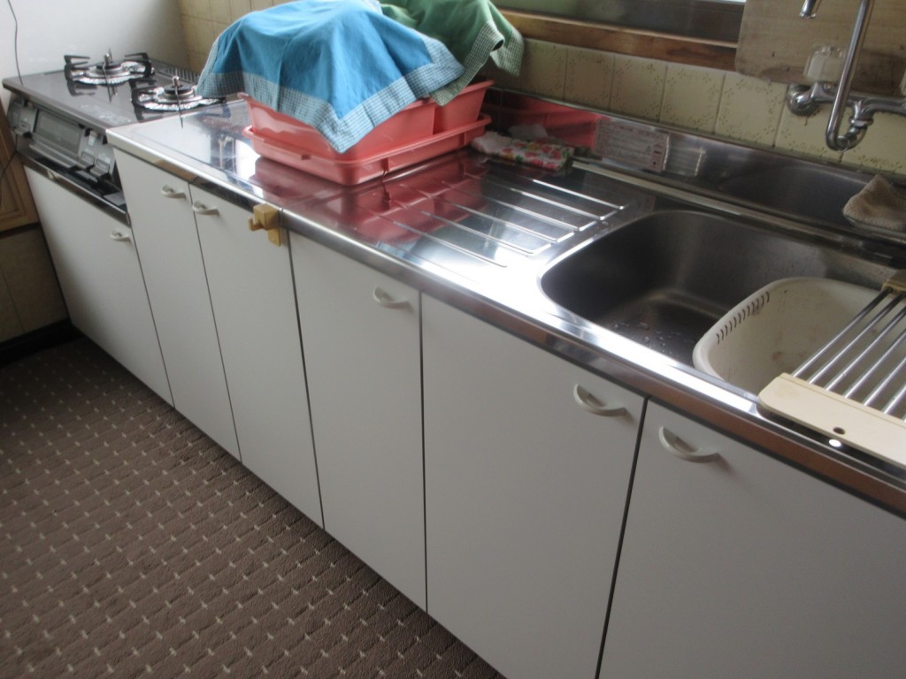 室内改修工事はほぼ終了しました、今回キッチンをクリナップ3点セット商品に取り替えました。