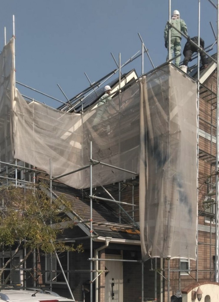 本日は仮設足場、防塵ネット張りは終わりました。施主様がお困りでした鳥巣も取り除きました。