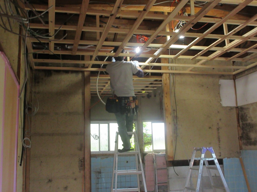 大工さんの造作工事が順調に進みましてので電気屋さんは配線作業は急ピッチですすめております