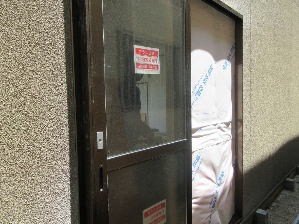 今回建物横の壁をぶち抜きまして片引き戸を付けました。