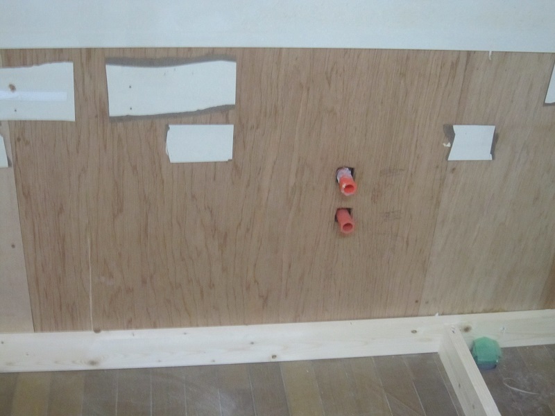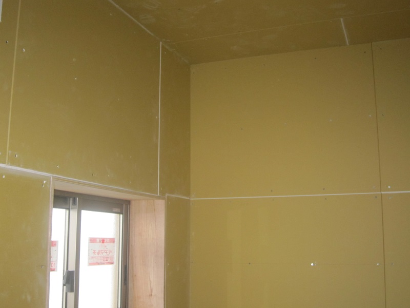 K様に提案しまして廊下廻り壁はクロス仕上げでなく珪藻土仕上げとしますが下地が出来ました 。珪藻土は高い調湿機能や悪臭の吸湿等に効果ありまして弊社は施主様に推薦しております。