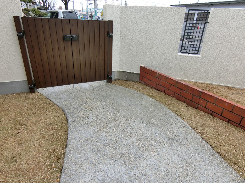 外構工事で残ってましたリビング・玄関・アプローチ前の土間の洗い出しが終了し完成です。