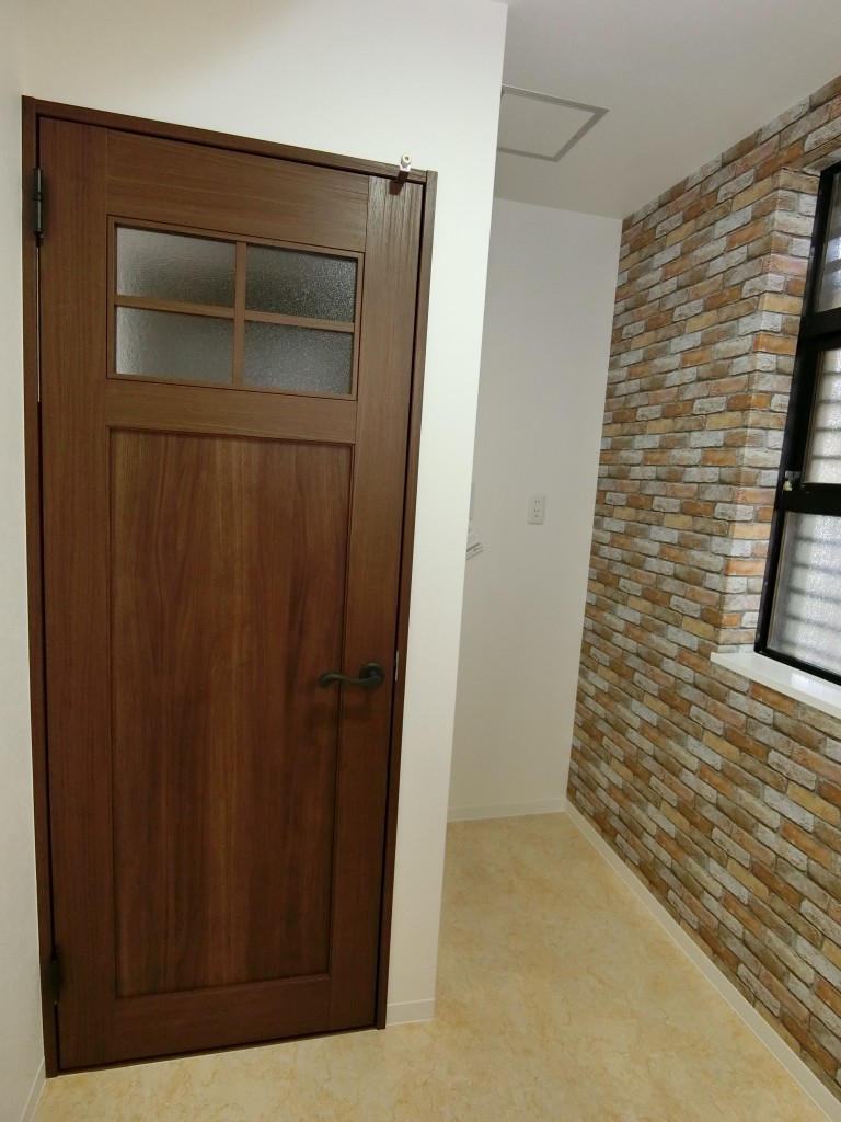 室内ドア:三協アルミ「リヴェルノ」52型、色:ブラウンナット
