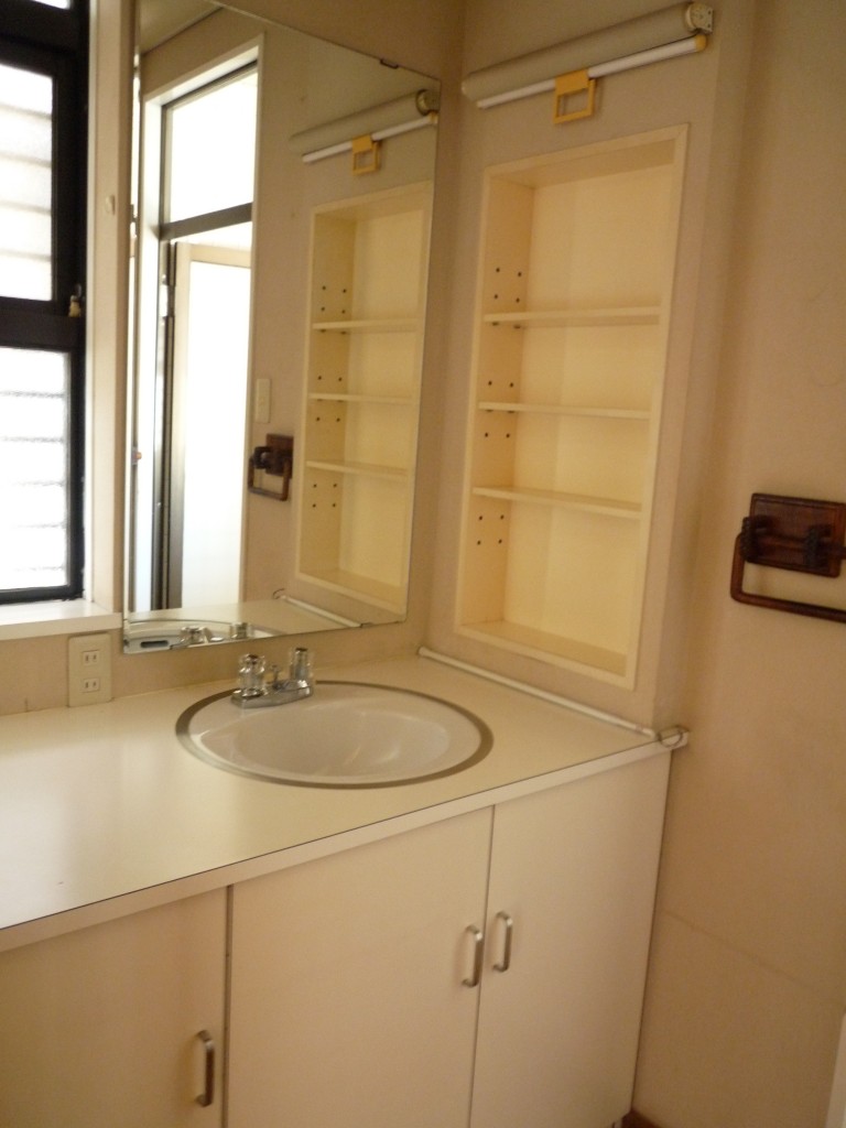 ・洗面→脱衣室が狭いため、洗濯機も置けるスペースを確保。