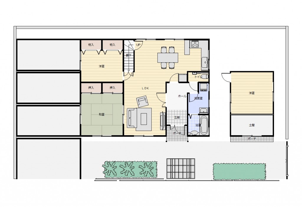 | リフォーム箇所 | ◆室内(本宅・離れ) 間取り変更、水廻り交換、床張替え、クロス貼替、室内ドア交換、 ◆外構 駐車スペース(土間コンクリート)門扉フェンス、塗装、サイクルポート、植栽(桜の木) |