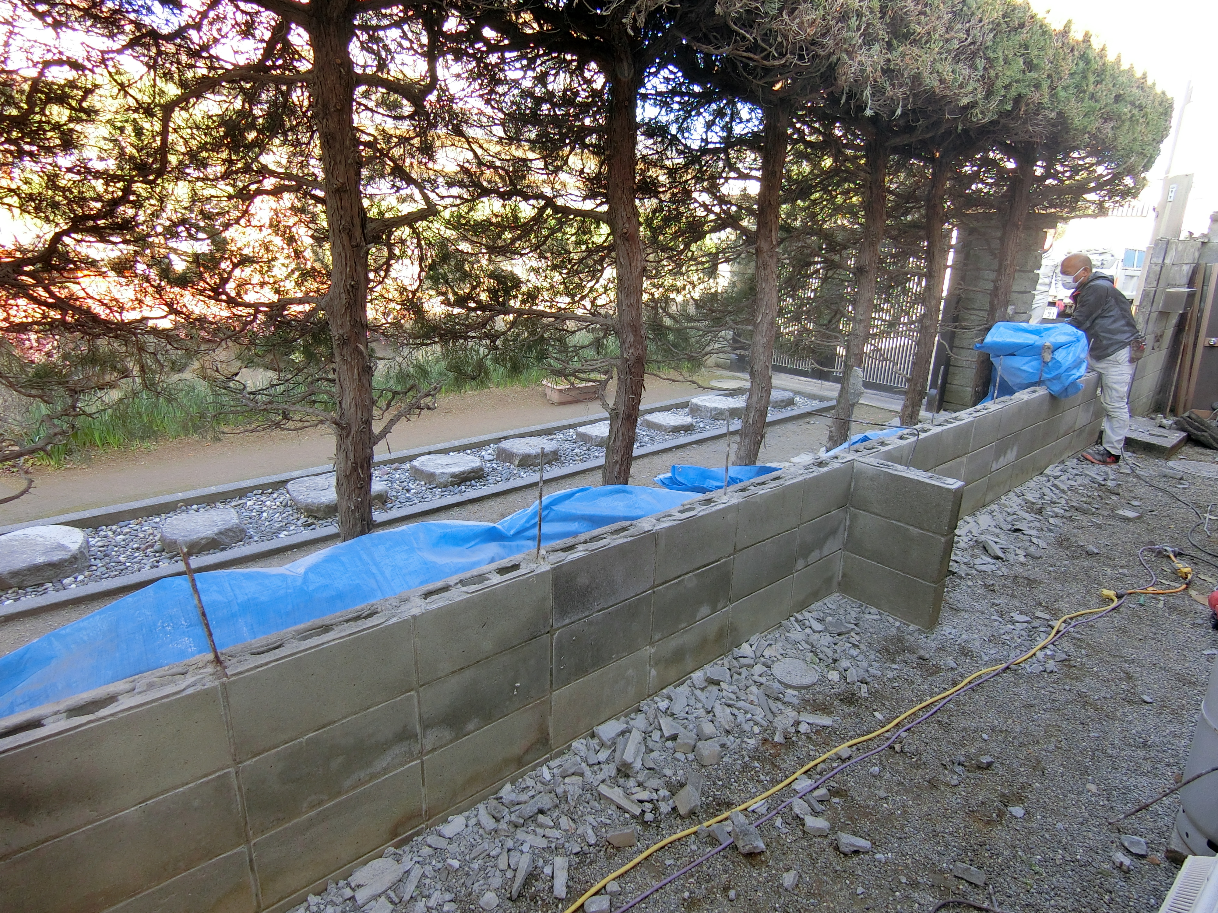 ひび割れしていた隣接部分の5段積みブロック復旧を行いました。