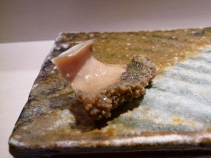 おこぜの肝あえ(味付けのアクセントは、なんと黄身!まろやかでした)