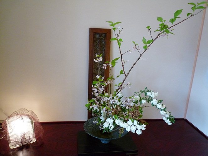 和室にはコンテナーガーデン「BREEZE(ブリーズ)」長町さんに活けて頂いた桜が。