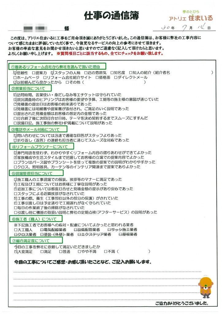 わかりやすくリフォーム内容の摺りあわせができてよかった