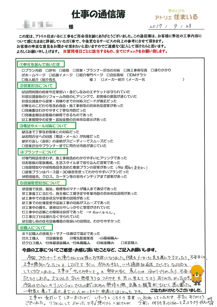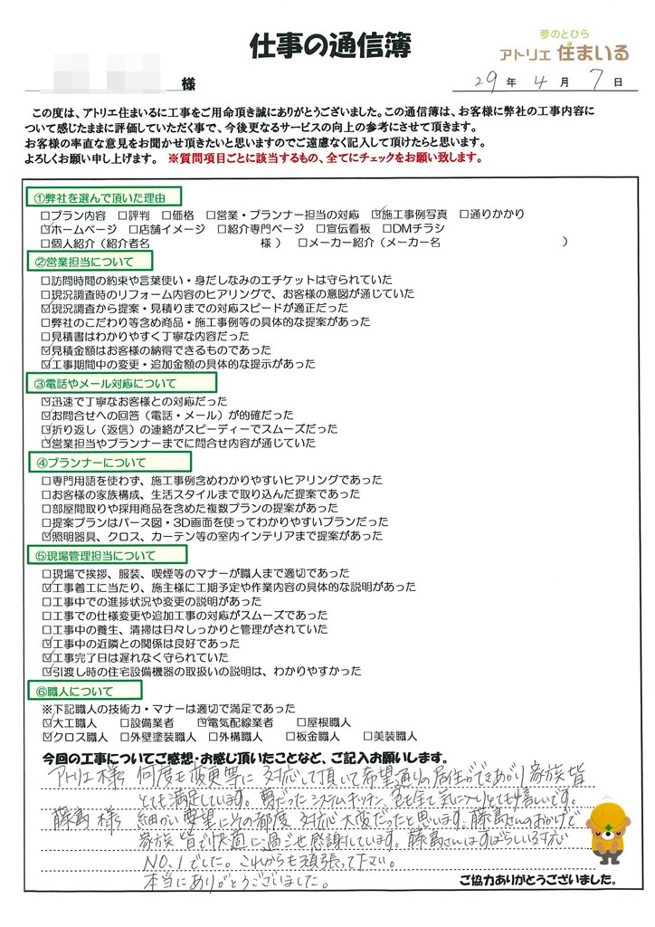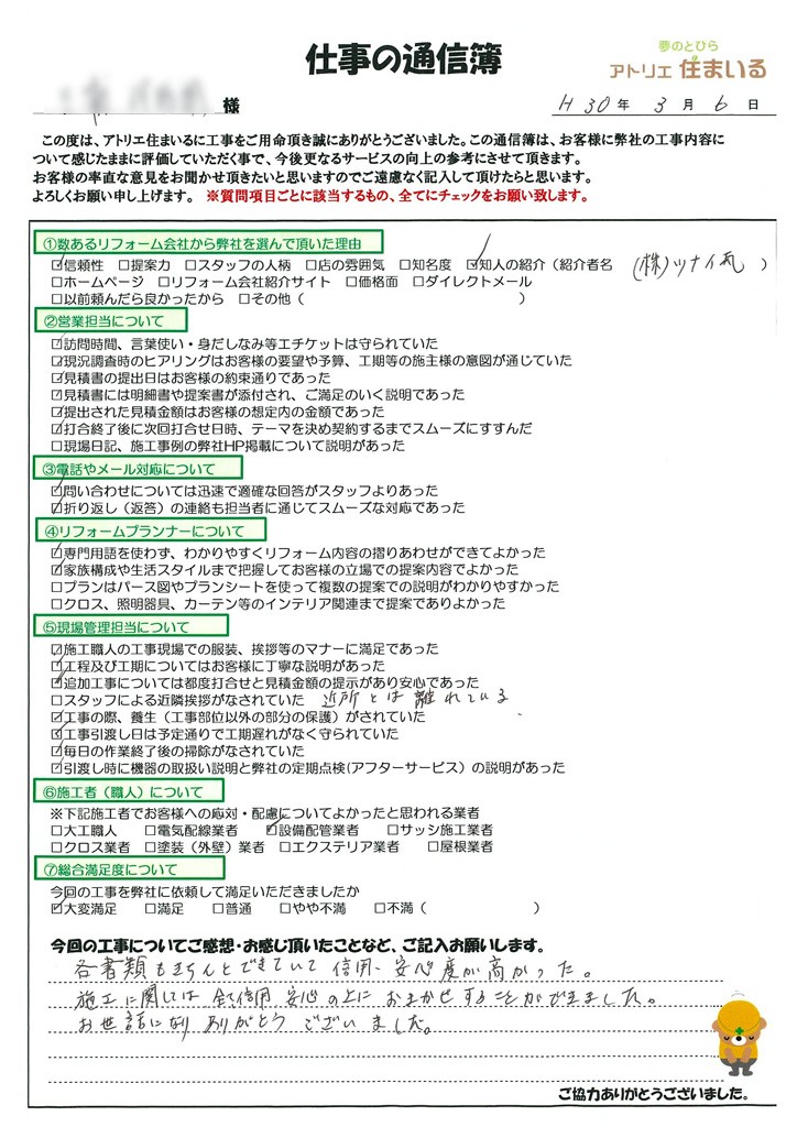 丁寧な対応で、アトリエ住まいるを選んだ事を誇りに思いました。