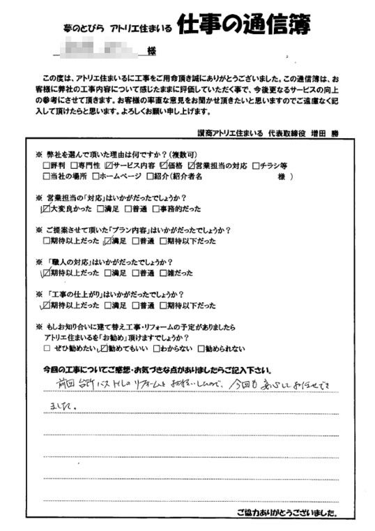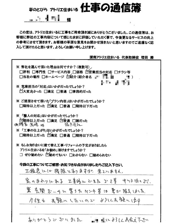 職人さん達によくしていただき、納期どおり終って良かったです。