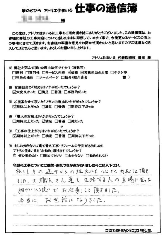 生活する人の立場に立った、細かい心遣いでお仕事して頂きました